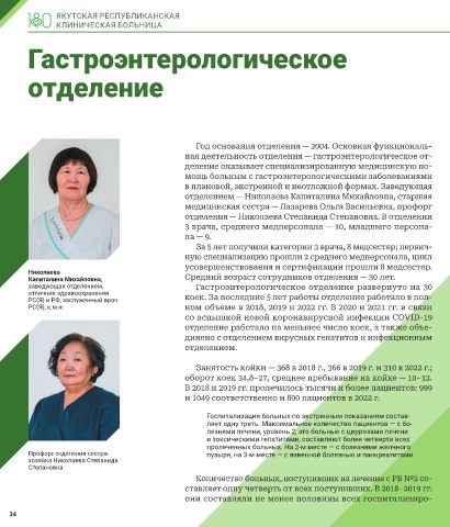 заведующая отделением, Гастроэнтерологическое отделение развернуто на 30