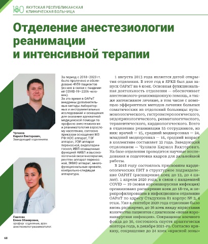 (из них в связи с пандеми‑ пуск ОАРиТ на 6 коек. Основная функциональ-